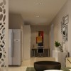 112平米的三居室,采用现代简约的装修风格,在本案例的设计当中,大量的留白处理营造一个轻松惬意的居室环境,在客厅的装饰布置当中,并没有过多的造型设计,通过最简单直接的方式,打造出一个时尚之家,平顶式的石膏板,搭配上一盏线圈式的吊灯,别致的灯罩给人一种圆润的感觉,一张个性的地毯铺设,鲜明的色彩反差,正好起到一个色彩的点缀效果,其中同样比较吸引人眼球的就是电视背景墙的造型,首先在视觉感观上营造出一种立体感,而条纹性的壁纸铺贴,也演绎出一种动态感,唯一感觉美中不足的就是环境中缺少了生机,如果在适当的添置一些绿植,其效果应该会更不错。